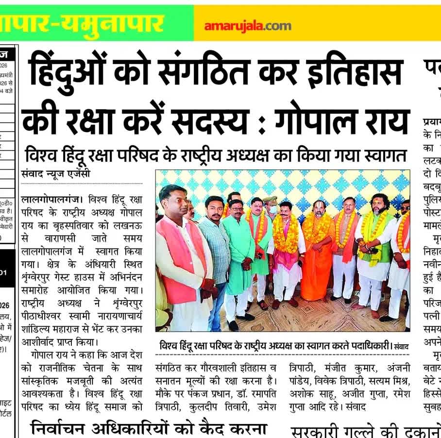 The Vishva Hindu Raksha Parishad (VHRP) is a religious and social organization founded by Mr.Gopal Rai on the auspicious occasion of Ram Navami. The aim of this organization is the protection, empowerment, and progress of the Hindu community. Shri Gopal Rai, during his travels across the country, felt that the development of Hinduism was not progressing and that other religions were being promoted more. To change this situation, he established the Vishva Hindu Raksha Parishad with the goal of presenting Hinduism and society in a stronger and more organized manner.